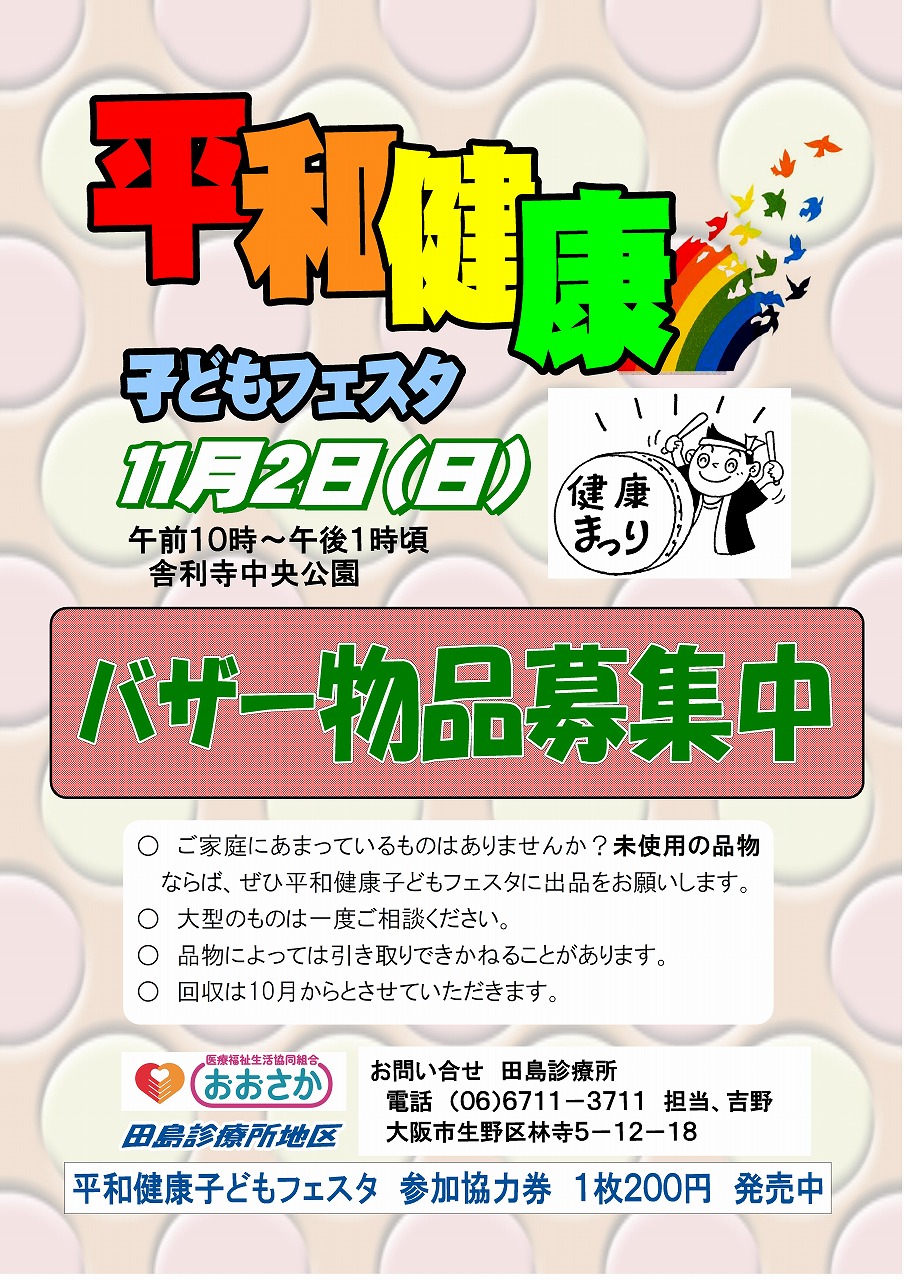 医療法人同友会 共和病院 医療法人貴和会 生野中央病院 コープおおさか病院 うえに生協診療所 いまざと診療所 城東診療所 蒲生厚生診療所 のえ生協診療所 まった生協診療所 今津生協診療所 田島診療所 あかがわ生協診療所